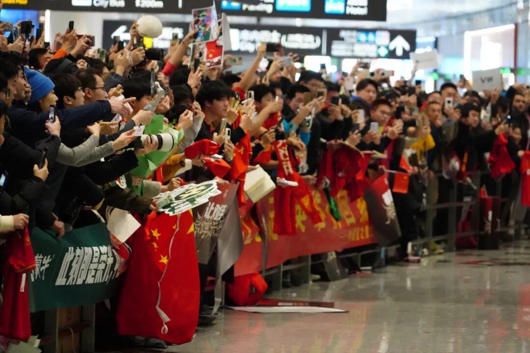今天下午U23国足抵达北京大兴机场后,许多球迷用最炽热的热情,迎接这支创造历史的年轻队伍回家。